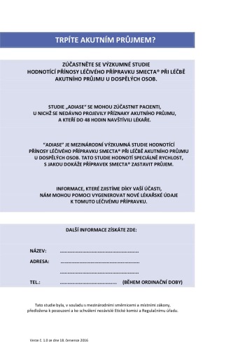 naše ordinace se zařadila do výzkumné studie, která hodnotí účinost přípravku SMECTA, který se užívá při akutním průjmovém onemocnění.